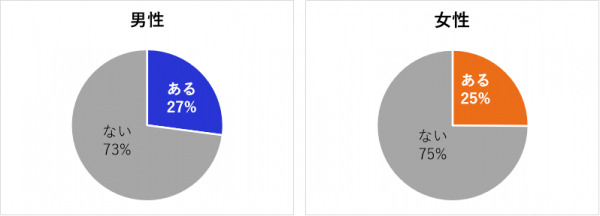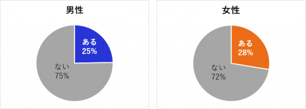性別で見ると、男性25%、女性28%と、女性のほうがやや多い結果となりました。
