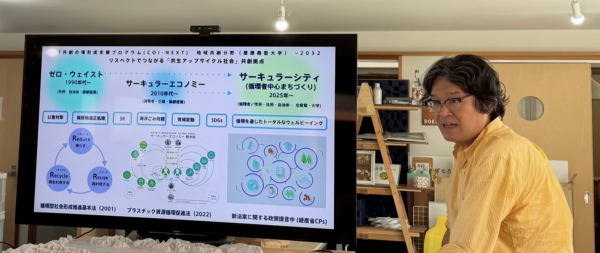 慶應義塾大学SFCリサイクリエーション鎌倉ラボにて、田中教授から自治体・大学・企業・市民が連携する「サーキュラーシティ鎌倉」の取り組みに関する講義があり、ラボで研究しているは3Dプリンタを活用した資源循環型のモノづくりや、ごみ収集AIカメラの活用など、地域の特性を生かした循環モデルが紹介されました。