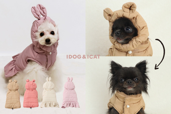 ■ くま耳・うさ耳付きのかわいい犬用ダウンコート