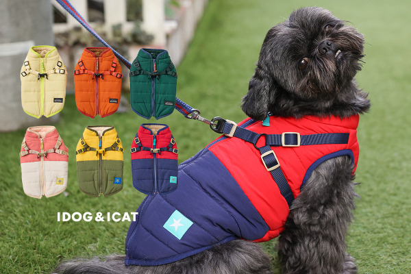 暖かなダウン風アウターとハーネスが一つになった防寒ハーネスが大切なパートナーの冬のお散歩を一層楽しく、快適にします。