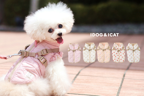 可愛らしさとやわらかさ、暖かみのあるデザインの【iDog fleur(アイドッグ フルール)】シリーズの、中綿入りの暖かくてかわいい愛犬用ダウン風コートです。