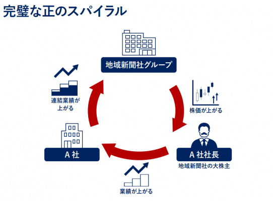 また、地域企業が当社グループに参画することで当社の連結業績の拡大につながり、企業価値が向上した結果、株式交換により当社株主となった元オーナーの資産価値も上昇するという「正のスパイラル」が生まれます。さらに、参画企業が増えるほどプラットフォーム全体の価値が高まるという連鎖により、地域経済の持続的な活性化が期待できます。