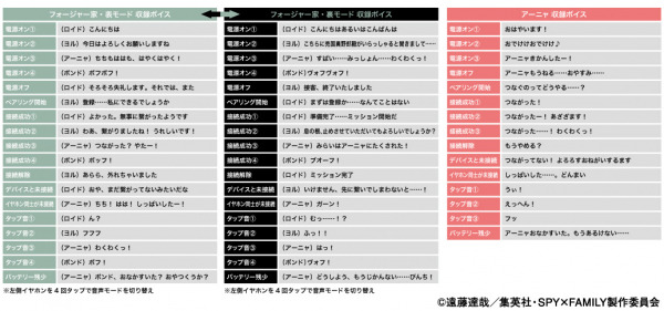 本コラボレーションモデルは「フォージャー家」と「アーニャ」の2モデル。充電ケース天面に作品タイトル、左右ハウジングに各キャラクターを象徴するアイコンを配置。「フォージャー家」モデルは「ロイド」「アーニャ」「ヨル」「ボンド」による新規録り下ろし掛け合いボイスを搭載し、表モードと裏モード(各18ワード)の2モード仕様。「アーニャ」モデルは「アーニャ」の新規録り下ろしボイス計15ワードを搭載。電源オンやオフ、ペアリング時、タップ音等のオリジナルボイスを楽しめます。