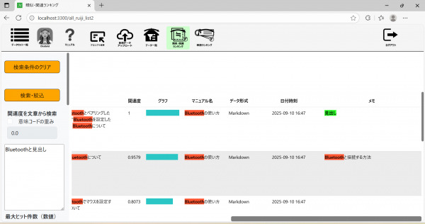類似度計算に反映。UIで即時プレビューでき、チューニングの効果を可視化。