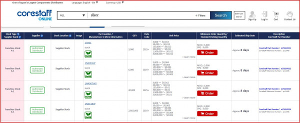 CorestaffでSLKORを見つける https://www.zaikostore.com/zaikostore/en/stockList?stockSearchNew=1&headerSearch=1&productName_forFind=slkor&typeStock_forFind=all&viewCount=50&pageNumber=1