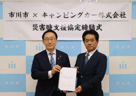 (市川市長:田中 甲、キャンピングカー株式会社:頼定 誠)