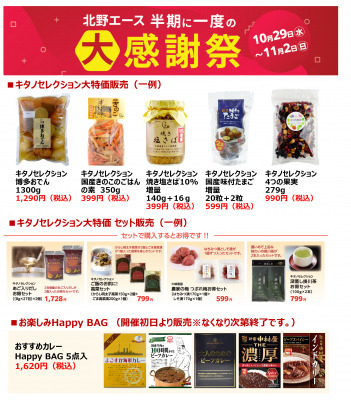 感謝祭期間中、北野エースならではの人気商品がお得な価格でご購入いただけます。ぜひこの機会にお買い求めください。
