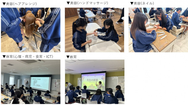 本イベントでは、生徒の皆さんが将来の進路選択やキャリア形成について考えるきっかけとなるよう、「美容」「ブライダル」「保育」「教育」の4分野から興味のある3つを選び、実際の職業に近い体験を行いました。