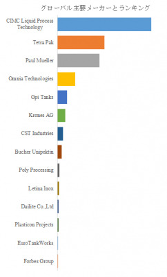 業界をリードする企業としては、CIMC Liquid Process Technology、Tetra Pak、Paul Mueller、Omnia Technologies、Gpi Tanks、Krones AG、CST Industries、Bucher Unipektin、Poly Processing、Letina Inoxなどが挙げられる。2024年時点で、上位5社が世界市場の約51%を占めるなど、一定の集中度を持つ市場構造である。これらの企業はそれぞれ異なる強みを有しており、CIMCやTetra Pakはシステム統合型ソリューションを提供し、Paul MuellerやGpi Tanksはカスタムメイドの衛生設計に注力している。一方、KronesやBucher Unipektinは飲料製造ライン全体を最適化するプロセスエンジニアリング能力で差別化を図っている。今後、AIによるプロセス制御やIoT連携による運用データの可視化が進むことで、食品用液体保存タンクは「静的な容器」から「知能的な生産装置」へと進化する見通しである。特にスマートファクトリー化の潮流とともに、タンクは生産情報のハブとして機能するようになり、食品メーカーの競争力を左右する中核設備へと位置づけられていくであろう。