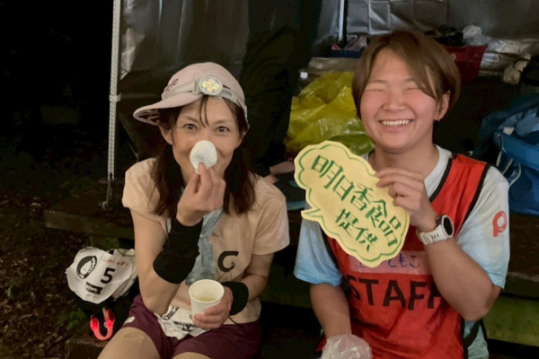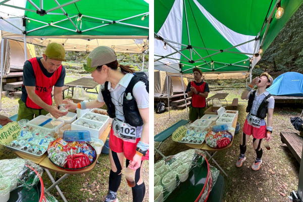 疲労がピークに達する終盤では、食べやすい「プチ葛まんじゅう」を手に取っていただき、選手は「これなら食べられる」「美味しい」と次の周回に向かっていました。