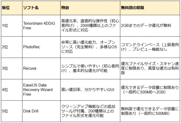 この記事では、2025年最新の情報を基に、特に評判の高いUSB復元フリーソフトを厳選して5つご紹介します。中でも、高復元率と操作の簡単さで初心者から上級者まで幅広く支持されている「Tenorshare 4DDiG Free」を詳しく解説します。