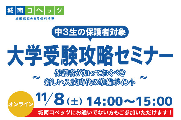 対象: 中学3年生のお子様をお持ちの保護者の方(城南コベッツにお通いでない方もご参加いただけます)