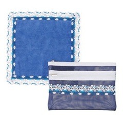 ANAオリジナルレースを施した、タオルハンカチとダブルファスナーポーチのセットです。