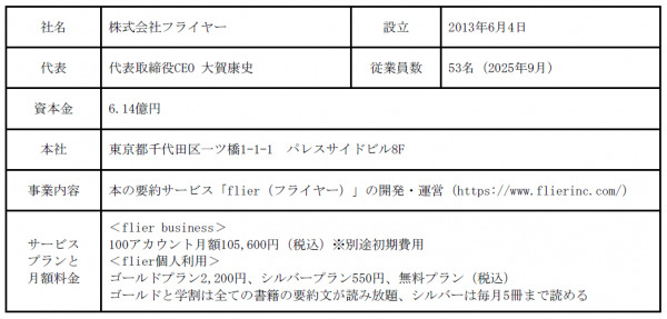 flierは、1冊10分で読める「本の要約サービス」です。ビジネス書の新刊や話題のベストセラー、名著の要約をウェブ、アプリで毎日公開。AIを使った音声版もあります。収録書籍数は4,100冊超、累計会員数は127万人、累計法人導入社数1,300社を突破しました(2025年8月現在)。