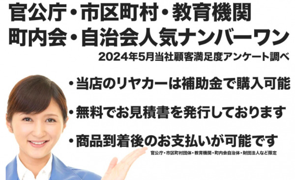 返品制度や出張修理にも対応しており、法人・自治体の導入にも安心の体制を整えています。