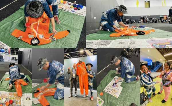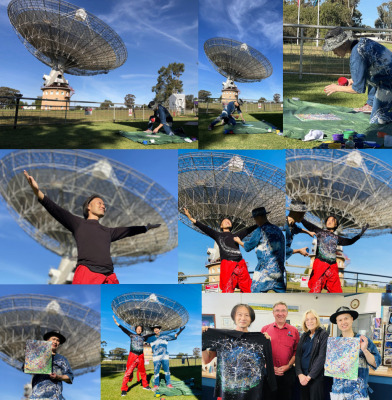 SHIBUKIアーティスト大下倉氏は、2025年9月30日と10月1日に国際宇宙会議(IAC 2025)の展示エリア内にて、そして同年10月2日にシドニー市内Shark Hotelで行われた「ユーリーズナイト」で、さらに同年10月4日にはシドニー近郊の街パークスを訪問し、映画「月のひつじ(洋画名:THE DISH)」の舞台となったパークス天文台前にてそれぞれSHIBUKIアートパフォーマンスを行いました。