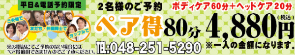 今回「もみの匠 川口店」では ペア得キャンペーンを新たに打ち出しました。