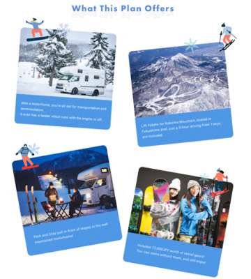 これまで国内で好評を得ていた本プランは、日本の高品質なパウダースノーと、キャンピングカーという自由な宿泊スタイルを同時に体験したいという海外からのニーズに応え、インバウンド向けにサービスを拡充しました。