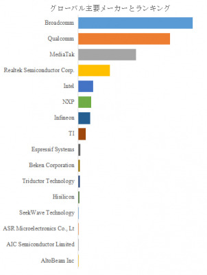 第13章では、WiFiチップ市場の主要メーカーについて、基本情報、製品仕様と用途、販売量、収益、価格設定、粗利益率、主力事業、最近の動向などの詳細情報を紹介します