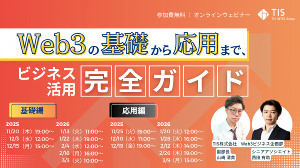 本ウェビナーでは、web3の基礎を学べる「基礎編」と、具体的なビジネス活用例に学ぶ「応用編」の2部構成で、web3が持つ可能性を最大限に引き出します。