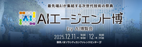 「AIエージェント博」は、自律的に思考し行動する「AIエージェント」に特化した展示会です。次世代の核となる本技術の最新動向や活用事例にフォーカスしています。