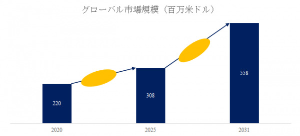 図. MLCC内部電極用ニッケルペースト(200nm)世界総市場規模