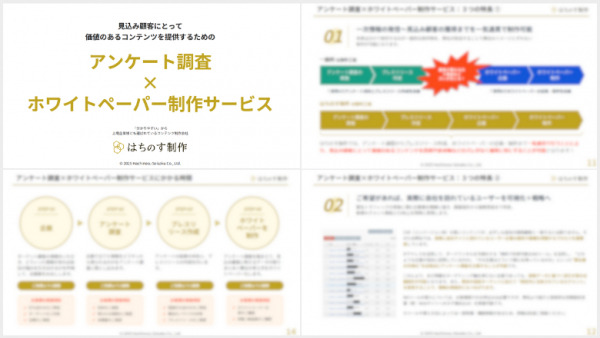 ・アンケート調査×ホワイトペーパー制作サービス:https://hachinosu-seisaku.co.jp/surveys-white-paper/