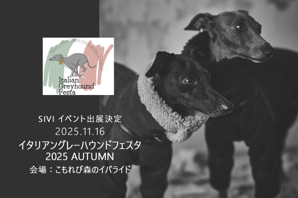 ウィペット、イタグレ向けドッグウェアブランド【SIVI(シヴィ)】は11/16開催のこもれび森のイバライドにて行われる「イタリアングレーハウンドフェスタ 2025 AUTUMN」に出店いたします。