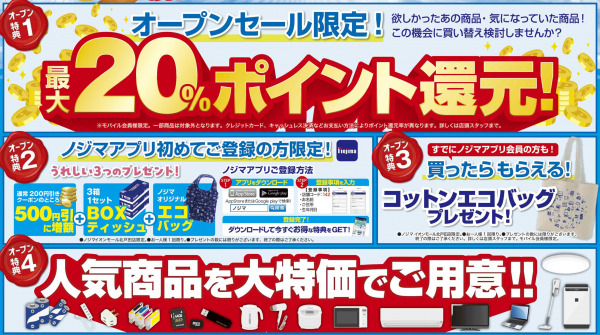 (3)既にノジマアプリをご登録の方は、商品ご購入でコットンエコバッグプレゼント!