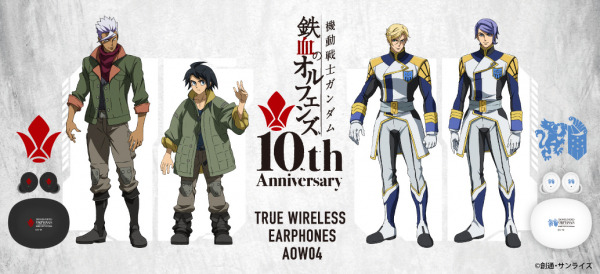 本コラボレーションモデルは、「鉄華団モデル」「ギャラルホルンモデル」の2タイプ。充電ケース天面、左右ハウジング共に作品タイトルと、各組織のマーク・紋章を配置。「鉄華団モデル」は「三日月・オーガス」と「オルガ・イツカ」の新規録り下ろし掛け合いボイスを搭載、「ギャラルホルンモデル」は「マクギリス・ファリド」と「ガエリオ・ボートウィン」の新規録り下ろし掛け合いボイスを搭載。電源オンやオフ、ペアリング時やタップ音等のオリジナルボイスを楽しめます。