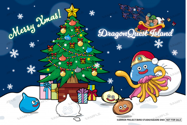 期間中、WEBでチケットを事前購入された方にお渡しする特典ポストカードが、クリスマス限定デザインに変更されます。雪の中でホミロットやスライムたちが笑顔で並ぶ、ここでしか手に入らない冬限定イラストです。