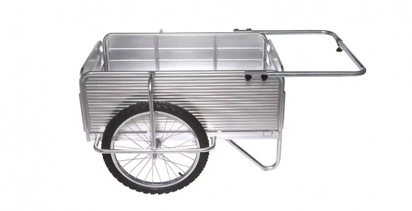 軽量なアルミ製フレームとノーパンクタイヤを採用したリヤカーは、ぬかるみ・未舗装路でも走行可能で、農作物の収穫搬送や資源回収、観光イベントなど多用途に利用されています。