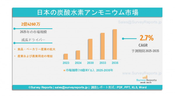 詳細レポートへのアクセスはこちら:https://www.surveyreports.jp/industry-analysis/japan-ammonium-bicarbonate-market/1038191