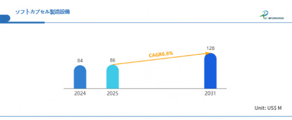 LP Information調査チームの最新レポートである「世界ソフトカプセル製造設備市場の成長予測2025~2031」(https://www.lpinformation.jp/reports/200137/softgel-manufacturing-equipment)によると、2025年から2031年の予測期間中のCAGRが6.8%で、2031年までにグローバルソフトカプセル製造設備市場規模は1.28億米ドルに達すると予測されている。