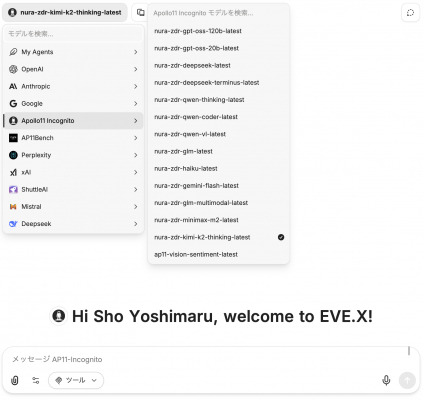 ビジネスAIプラットフォーム「NuraGrid(ニューラグリッド)」を提供する株式会社APOLLO11(本社:愛知県名古屋市昭和区、代表取締役:吉丸 彰)は、2025年11月18日より、NuraGrid上で利用可能な新たな生成AIモデルとして「Kimi K2 Thinking」をZero Data Retention(以下、ZDR)モデルで提供開始したことをお知らせいたします。