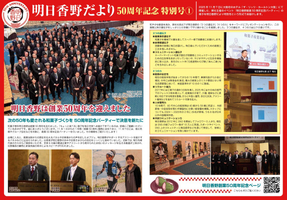 特別号では2025年11月7日に大阪府の「ザ・リッツ・カールトン大阪」にて開催した「明日香野創業50周年記念パーティー」の様子をお届けしています。100名を超える取引先企業様にお祝いいただき、次の50年もさらに成長を遂げるための企業像を示すことができた素晴らしいパーティーの様子をぜひご一読ください。