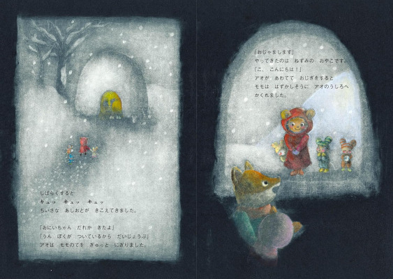 ある冬の日、大きなかまくらをつくり、森の動物たちをおもてなししていたキツネの兄妹・アオとモモ。でも、冬眠から起きた大きなクマが、かまくらを壊してしまいます。