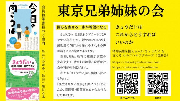 ・精神疾患のある人の「きょうだい」が語り合う場として知られる 「東京兄弟姉妹の会」