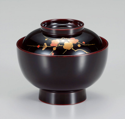 【手描き蒔絵・磨き蒔絵】越前塗 梅 溜塗(ためぬり)雑煮椀[1客]
