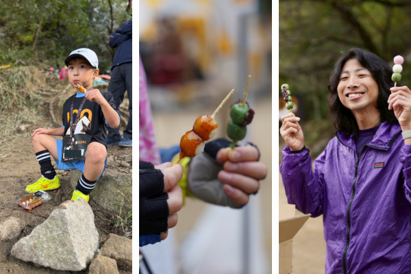 明日香野は「大人の団子(みたらし)「大人の団子(三色・よもぎ使用)」「大人の団子(よもぎ・十勝産小豆使用)」をご用意。多くのランナーにとって未体験の長丁場で「ちょっと食べる」喜びをお届けしました。