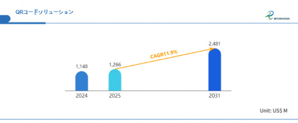LP Informationの「世界QRコードソリューション市場の成長予測2025~2031」(https://www.lpinformation.jp/reports/55770/qr-code-solution)によれば、QRコードソリューション市場は今後年平均11.9%で成長し、2031年には24.8億米ドル規模に達すると見込まれている。この高成長率は、特定業種への偏りではなく、多様な業界が並行してQRコードを導入・最適化している構造を反映したものであり、「非連続的な導入が連続的成長を生む」という分散型成長の象徴ともいえる。