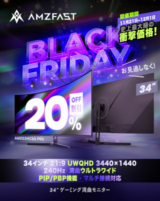 「AMZG34C5Q Pro」は、日本国内のメディアや著名なガジェットレビュワーなどからも高く評価されており、今回は過去最安値でのご提供となります。