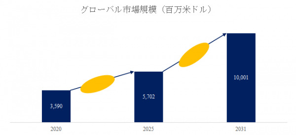 市場規模:年平均9.8%成長、2031年に100億ドル市場へ
