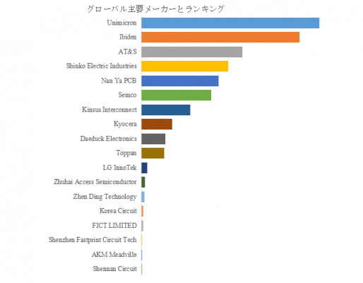現在、ABF基板市場を牽引している主要メーカーは、Unimicron、Ibiden、AT&S、Shinko Electric Industries、Nan Ya PCB、Semco、Kinsus Interconnect、Kyocera、Daeduck Electronics、Toppanなどである。LP Informationのデータによると、2024年時点で上位5社が世界市場の約72%を占めており、業界の寡占構造が際立っている。中でも台湾のUnimicronと日本のIbidenは、先端パッケージ向けで圧倒的な技術力を誇り、AIサーバーや高性能GPUの受注でリードしている。AT&Sは欧州勢として高速通信チップ向けで存在感を示し、ShinkoやKyoceraは高信頼性分野で強みを持つ。韓国勢のSemcoとDaeduckはサムスン系列の需要を背景に拡大しており、東アジアを中心に競争の軸が形成されている。各社ともに微細化対応ラインの増設、ABF材料の最適化、設計共創の深化を進めており、これが市場の技術革新を加速させている。