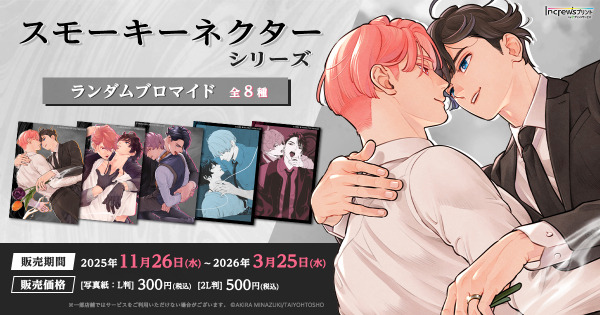 ミナヅキアキラ 先生の「スモーキーネクターシリーズ」のランダムブロマイドが、日本全国のコンビニエンスストアを中心とした約38,000店舗のマルチコピー機で一斉に販売開始!