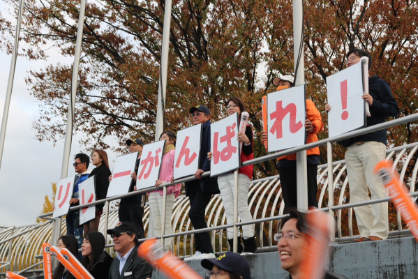 当日の駒沢会場は200メートル、800メートルに、リレー、棒高跳びややり投げと競技は目白押し。肌寒い曇り空だったが、メンバーたちは元気いっぱいに声をあげ、日本選手団を応援し、各国選手たちの健闘を讃えた。