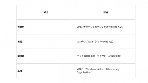 【WAKO世界キックボクシング選手権大会 2025 概要】