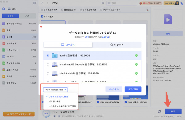 3. 復元したいファイルを選択し、保存場所を選択します。例えばGoogle DriveまたはDropboxなどのクラウドディスクに保存することを検討してください。