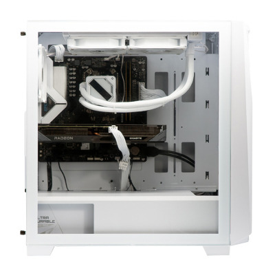 本製品は、主要パーツにGIGABYTE製品を採用することで、すぐれた互換性と安定した動作を実現し、ストレスのないゲームプレイをお楽しみいただけます。マザーボードにはAMD B840チップセットを採用した「B840M EAGLE WIFI6」、グラフィックスカードにはAMD Radeon RX 9060 XTのオーバークロックモデル「RX 9060 XT GAMING OC 16G」、電源ユニットには80 Plus Gold認証を取得した850W電源の「UD850GM PG5 V2 ICE」を採用することで、人気ゲームタイトルを快適にプレイできるだけでなく、4K動画編集などのクリエイティブワークにも最適です。PCケースには純白のデザインが映える「C301 GLASS WHITE V2」を採用し、CPUクーラーには240mmラジエターに2基のARGB LEDファンを搭載した水冷クーラーの「GIGABYTE GAMING 240」を組み合わせることで、すぐれた冷却性を実現するだけでなく、内部ライティングを魅力的に演出します。