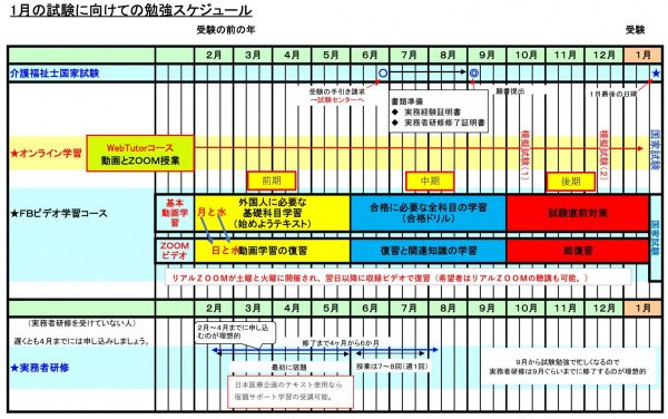 ※動画は1,000本以上、ZOOM学習は毎週4教室(介護基本知識、試験頻出漢字、過去問学習など)